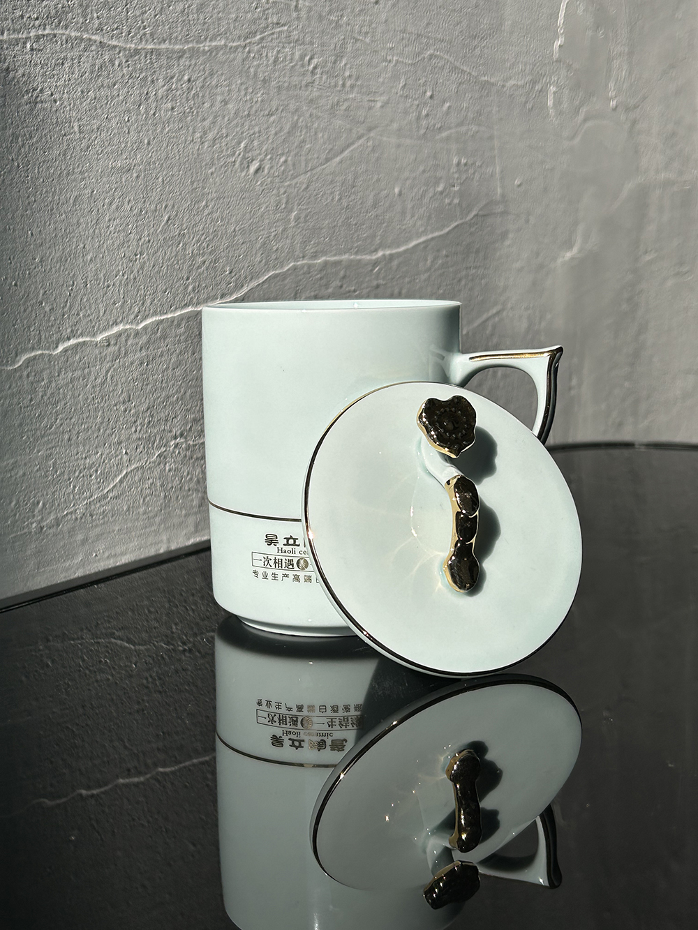 客戶定制 尖手柄如意蓋描金陶瓷茶杯